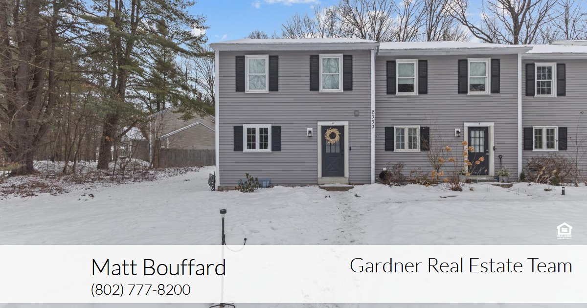 Situated just moments away from Mallets Bay and Five Corners of Essex Junction, this end-unit townhouse includes a charming outdoor space perfectfor morning coffee or evening relaxation. There are only 4 units in this well-maintained association nestled on 1 acre of land. The first floor offers a galley-style kitchenwith an open dining and living room area for functionality. With spacious bedrooms and 1.5 baths, there is plenty of room to call this townhouse your home. A generoussized basement with laundry and room for storage along with the detached 1 car garage. This property can be bought as an investment or owner occupancy. OPENHOUSE this weekend 1/24 and 1/25 from 11-1.